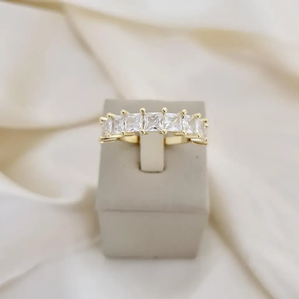 Anel 9 zirconias quadradas
