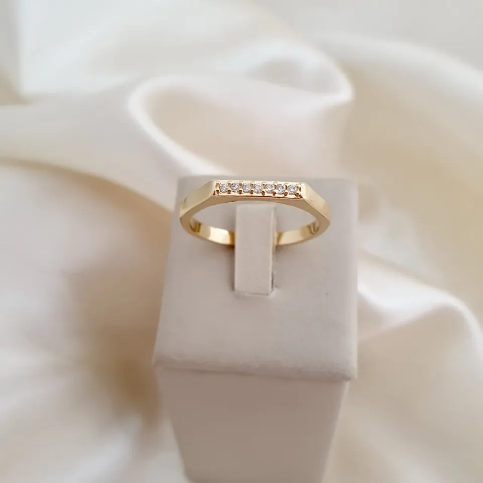 Anel aparador reto cravejado em zircônias