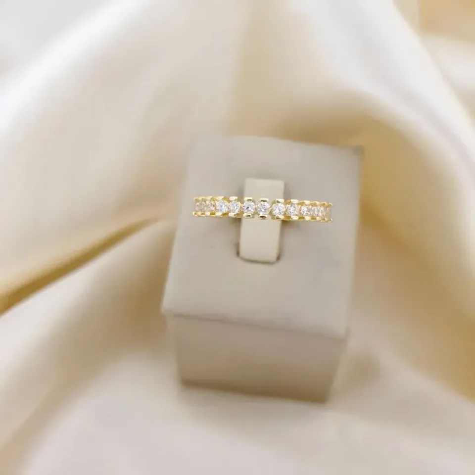 Anel aparador zirconias e aro detalhe
