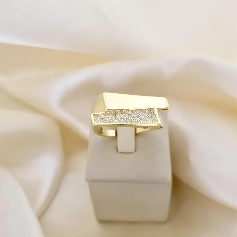 Anel aro reto e cravejado com zirconia