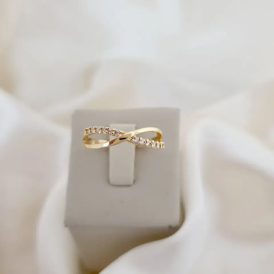 Anel aros trançados cravejado zircônia