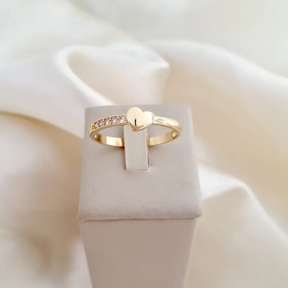 Anel coração cravejado 5 zircônias