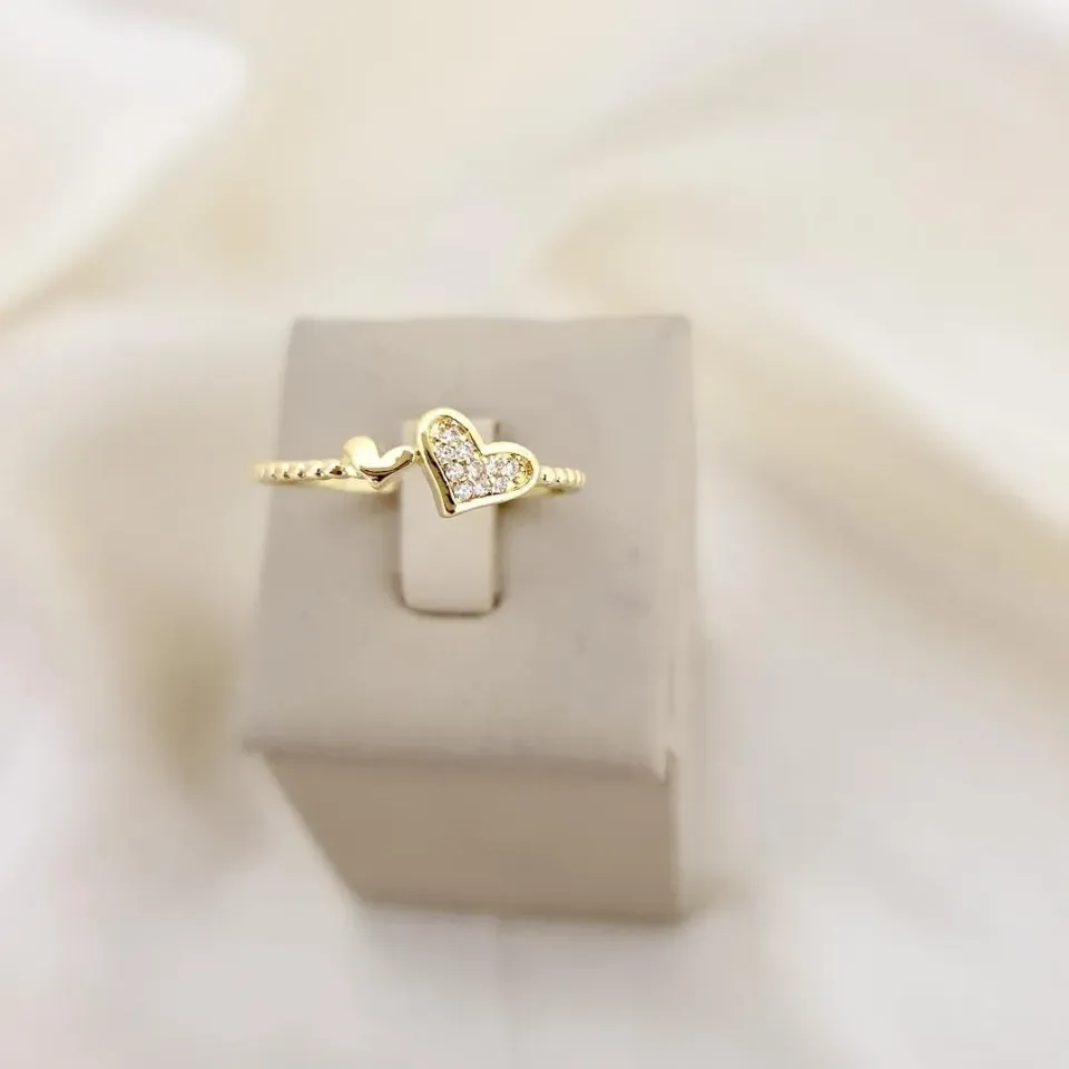 Anel coraçoes aro bolinhas