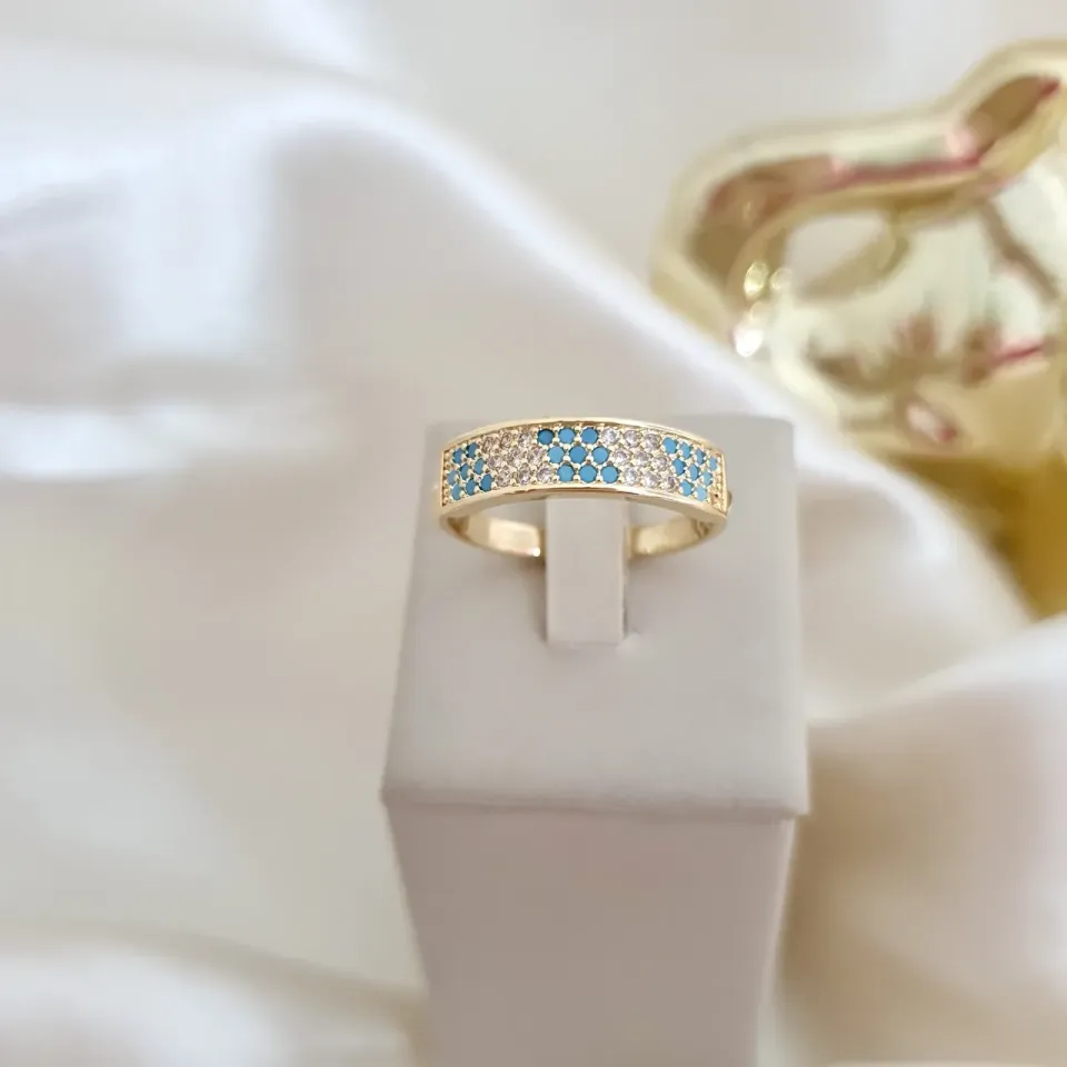Anel cravejado zircônia azul e cristal