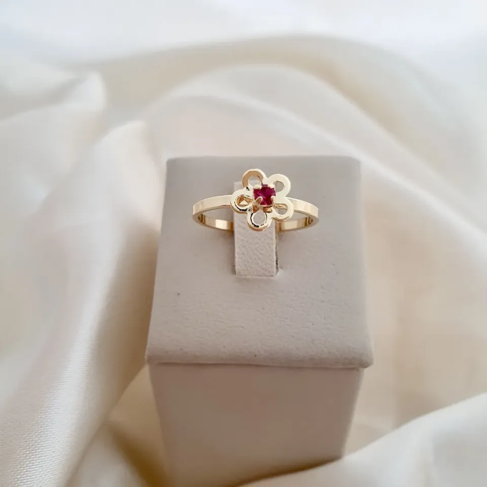 Anel flor cristal rosa ( falange / infantil)