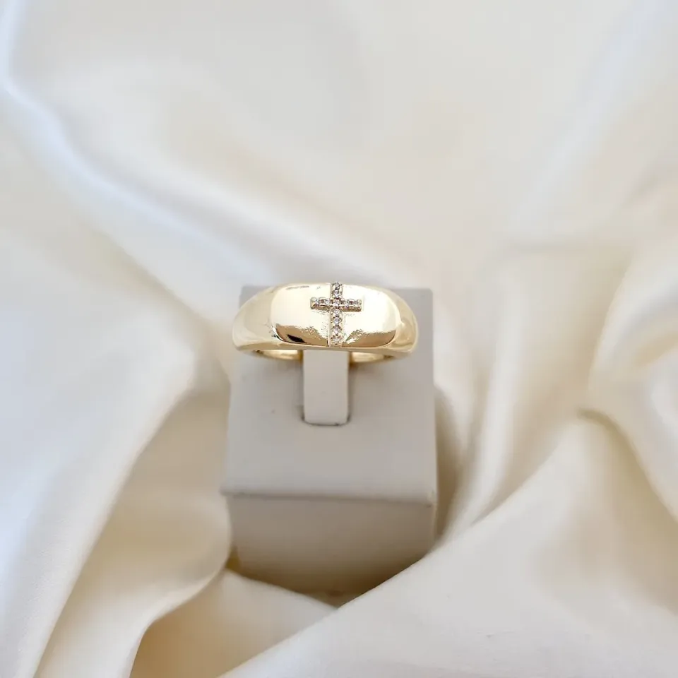 Anel largo cruz de zircônias