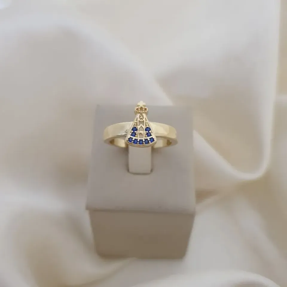 Anel Nossa Senhora cravejado zirconia azul