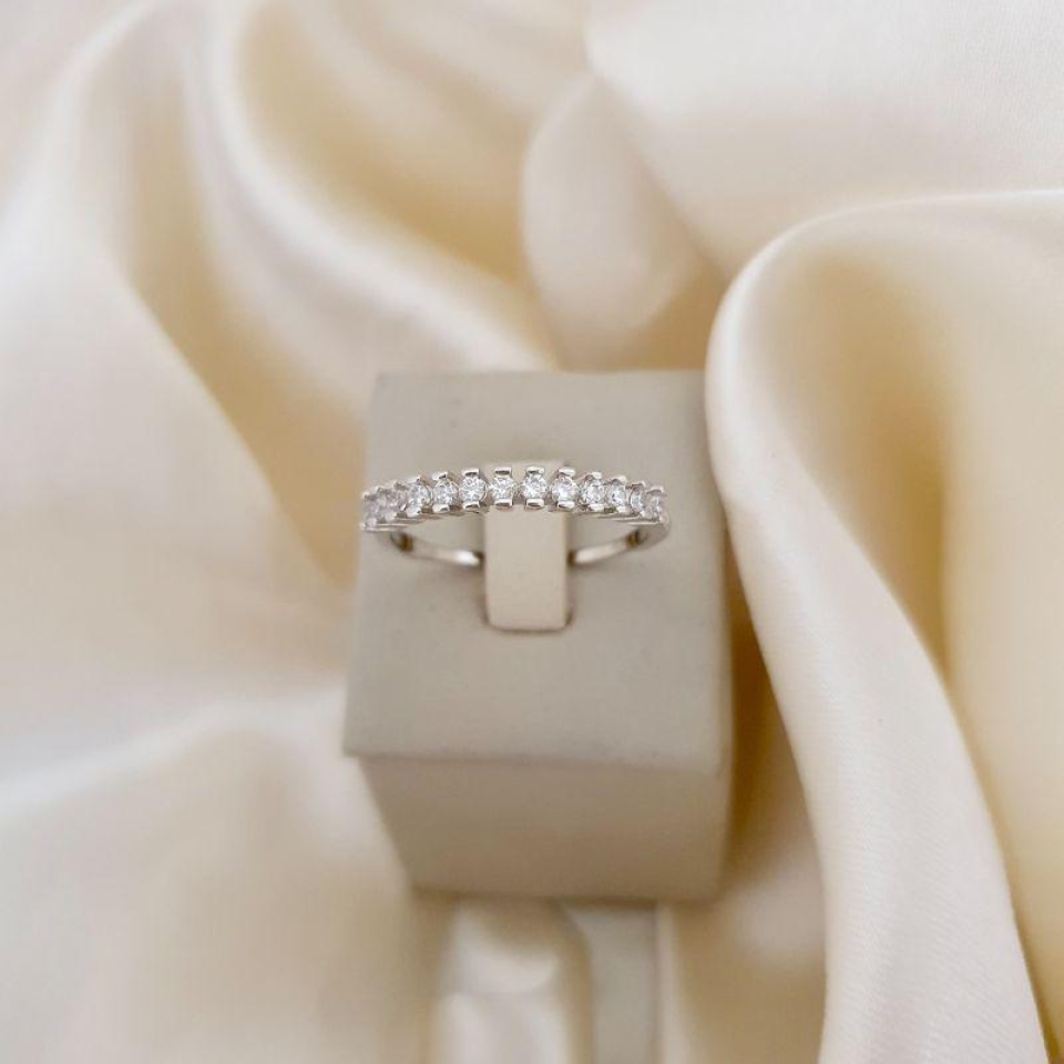 Anel ródio aparador zirconias aro detalhe