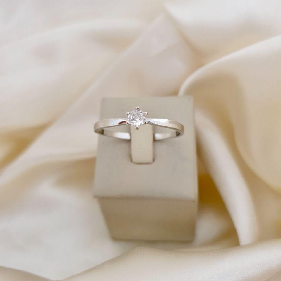 Anel ródio solitário zirconia