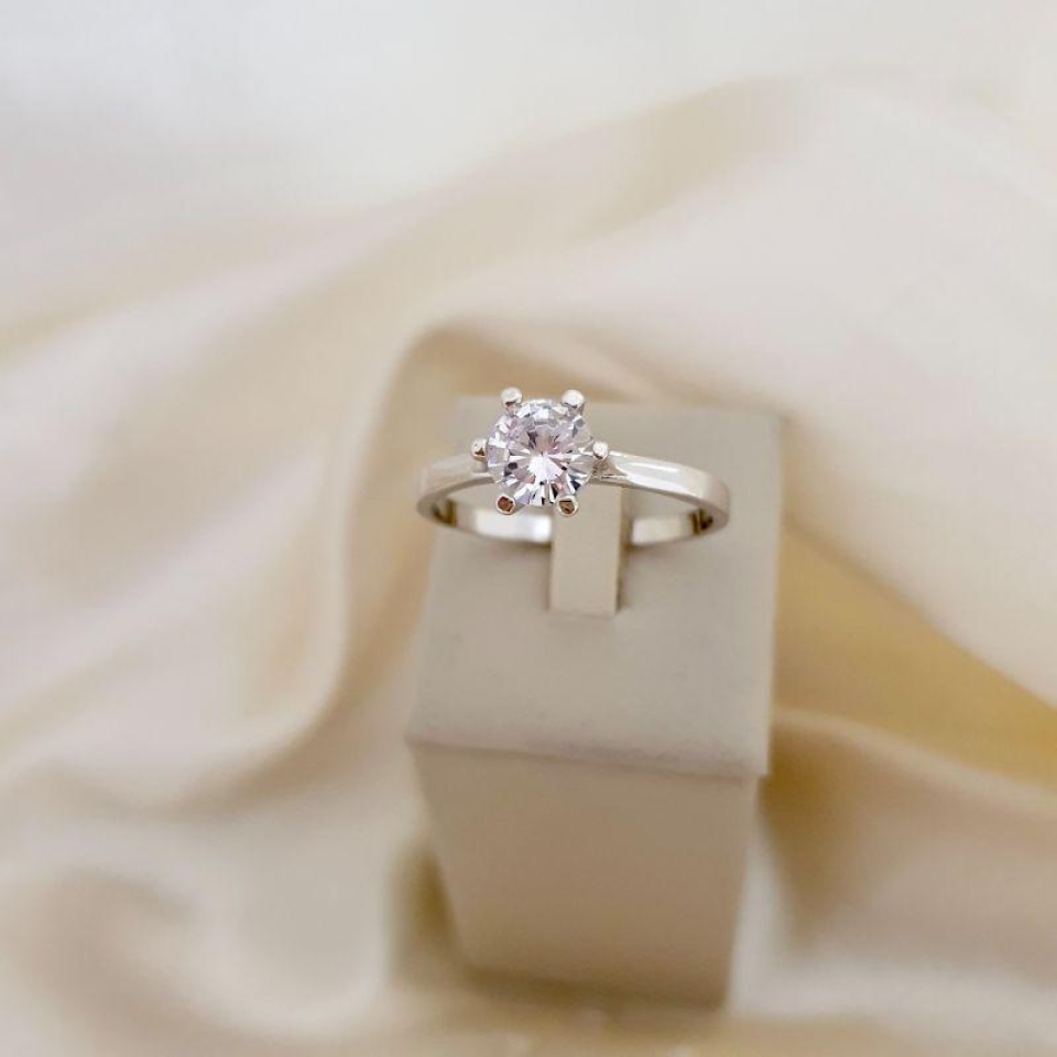 Anel ródio solitário zirconia 6mm