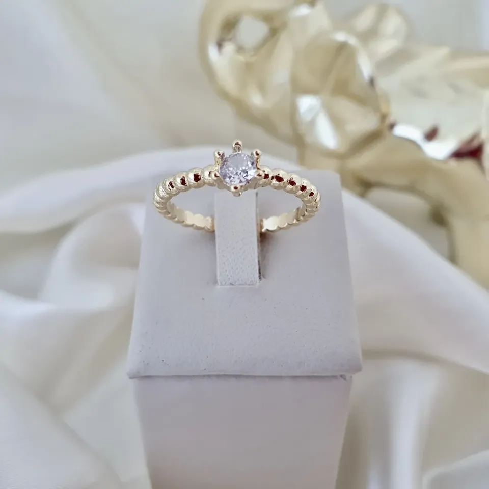 Anel solitário aro bolinhas