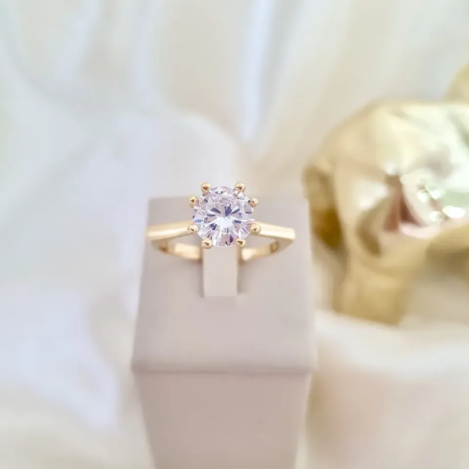 Anel solitário aro com pontas
