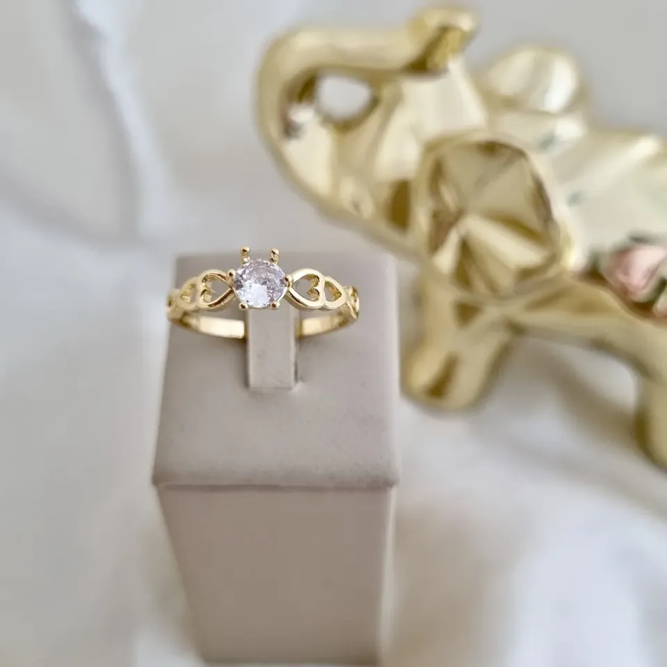 Anel solitário, aro em coração
