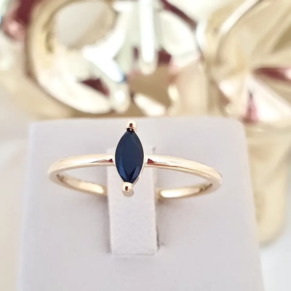 Anel solitário com zircônia navete preta