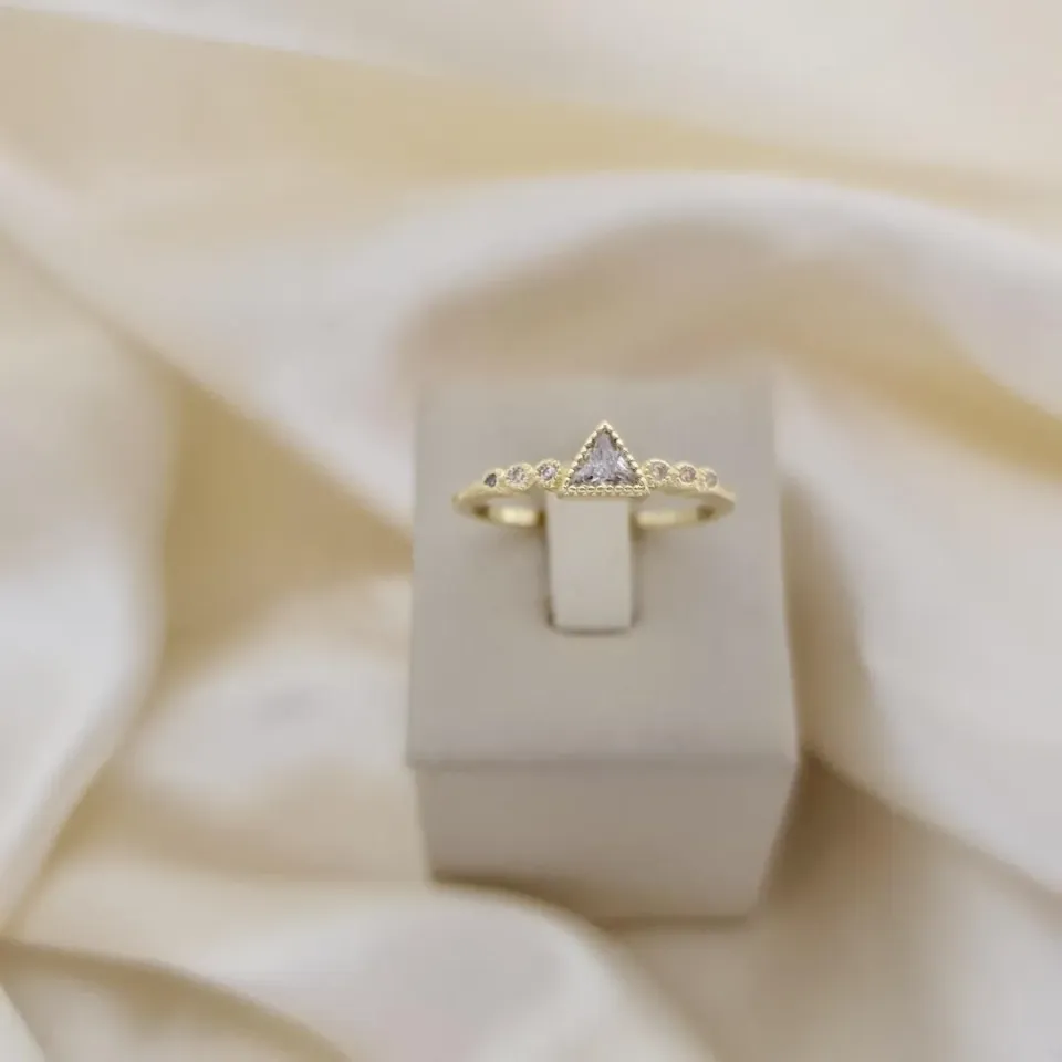 Anel triangulo zirconia e aro cravejado zirconia