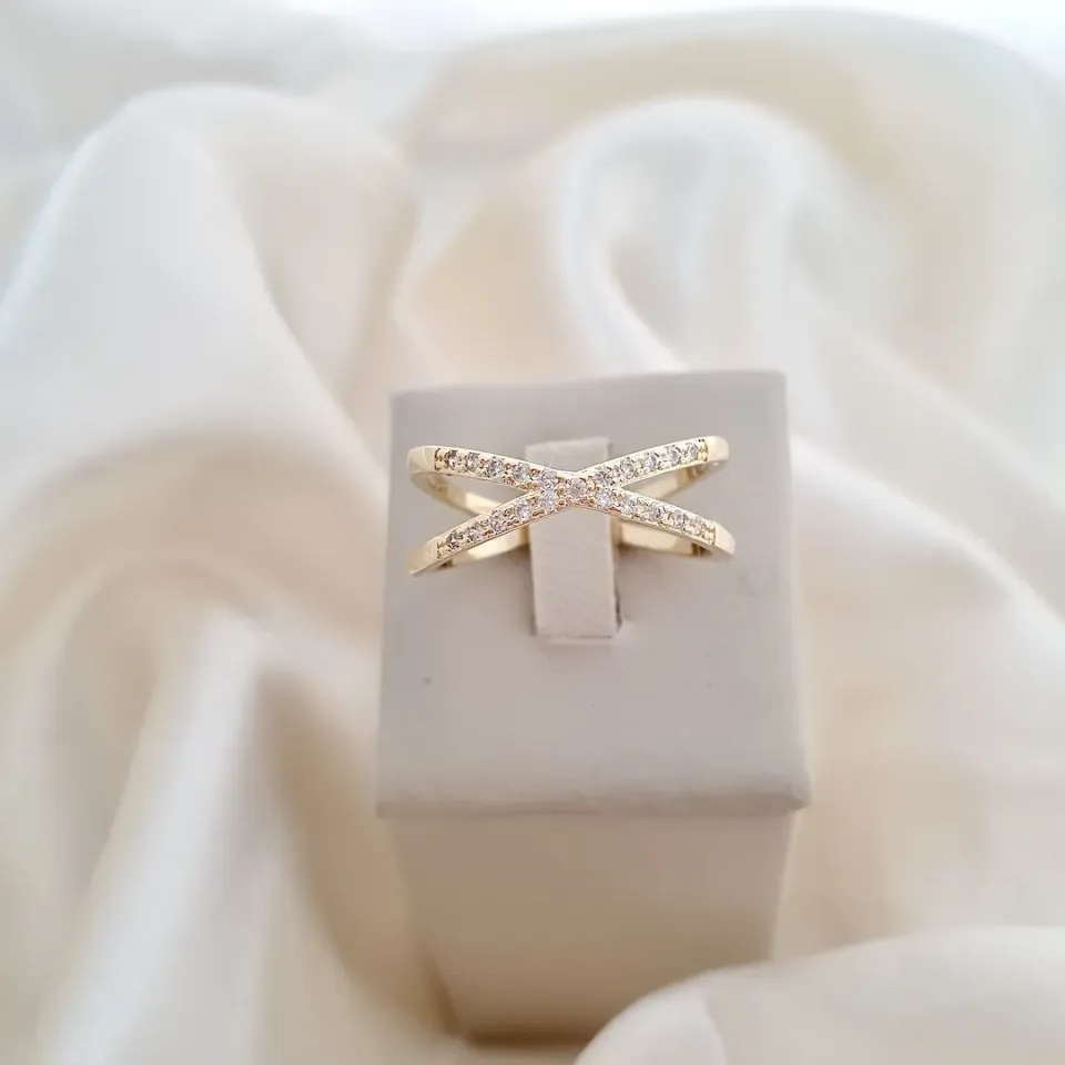 Anel X cravejado em zircônia