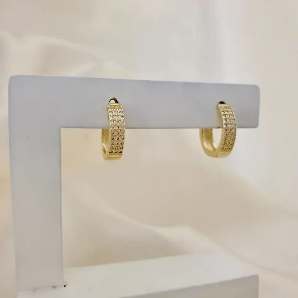 Brinco argola click 3 fileiras zirconia