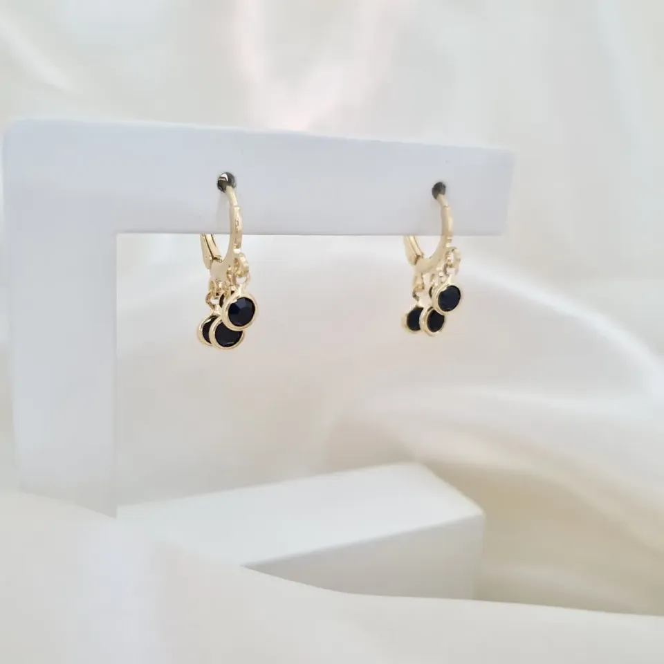 Brinco argola click com cristais pretos