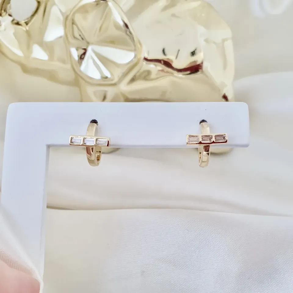 Brinco argola click com zircônias baguete
