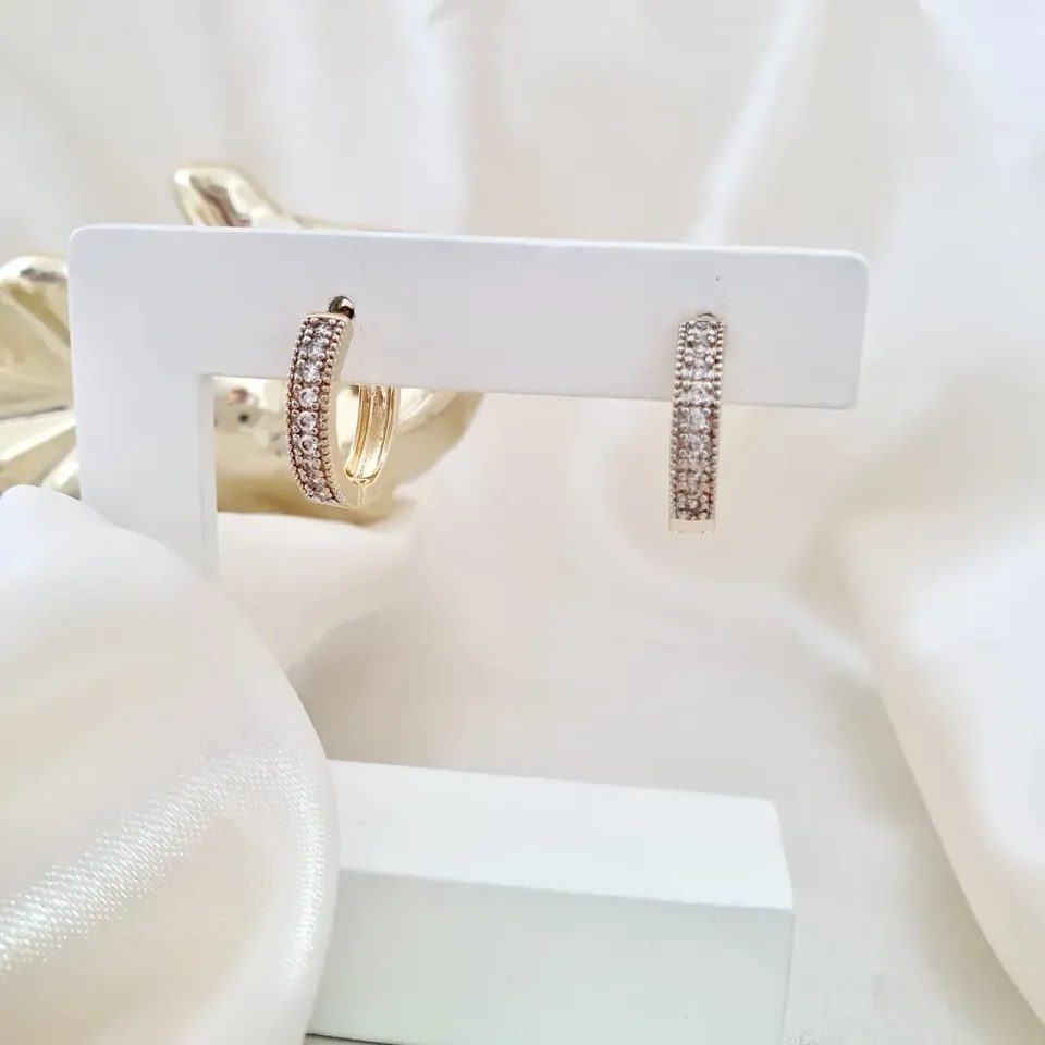 Brinco argola click com zircônias cravejadas