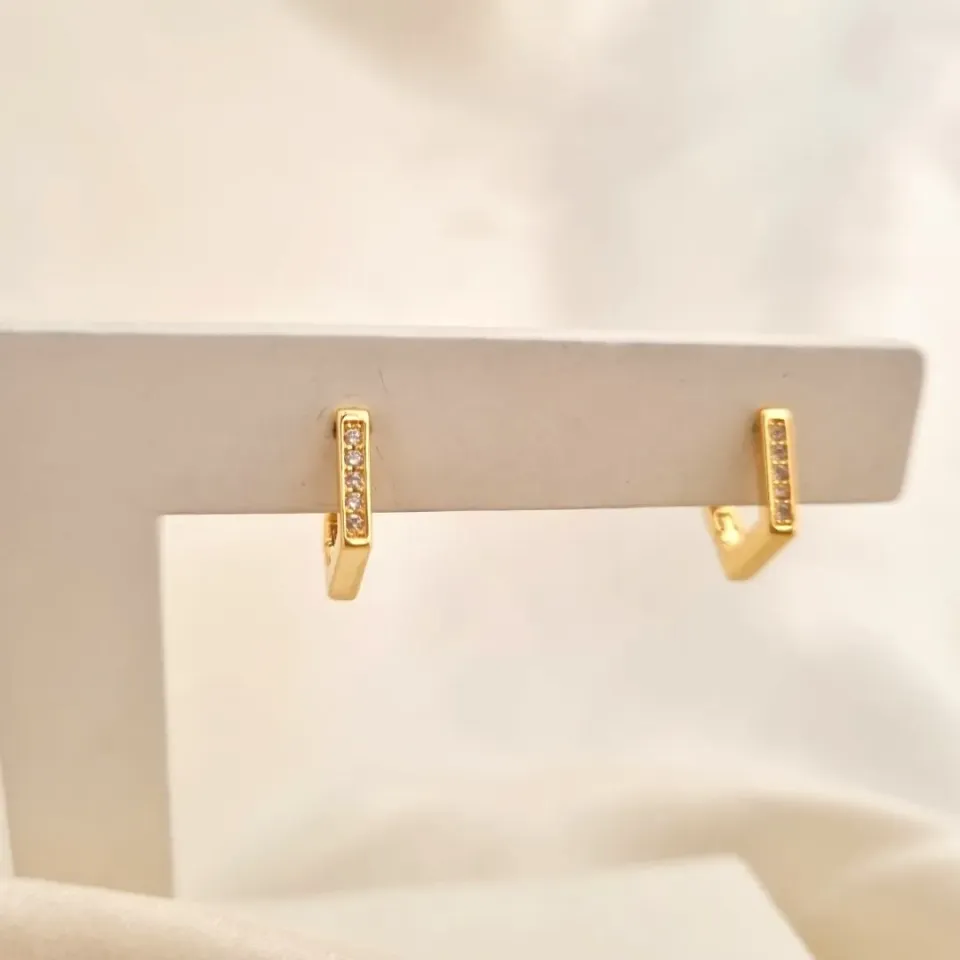 Brinco argola click quadrada zircônia