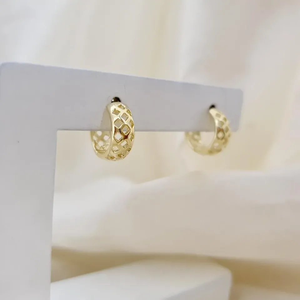 Brinco argola click quadrados, losangos, vazado