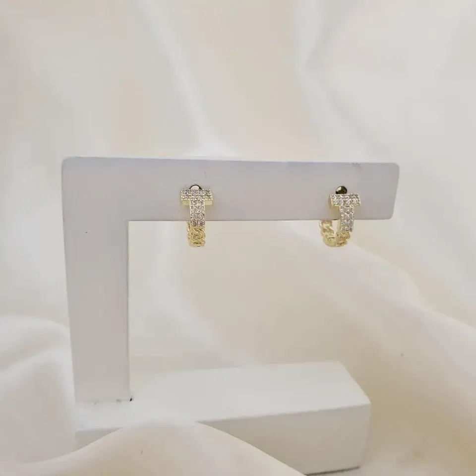 Brinco argola click T cravejado em zircônia