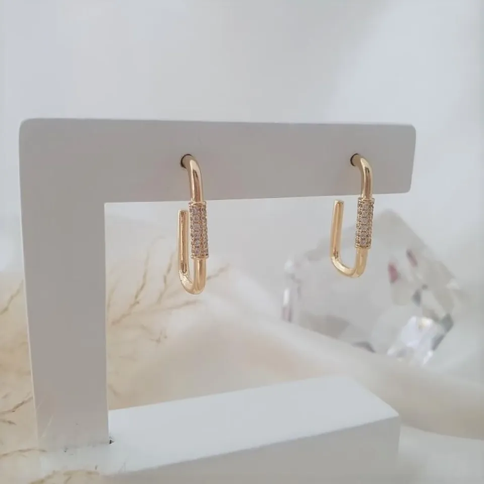 Brinco argola com detalhe cravejado em zircônia