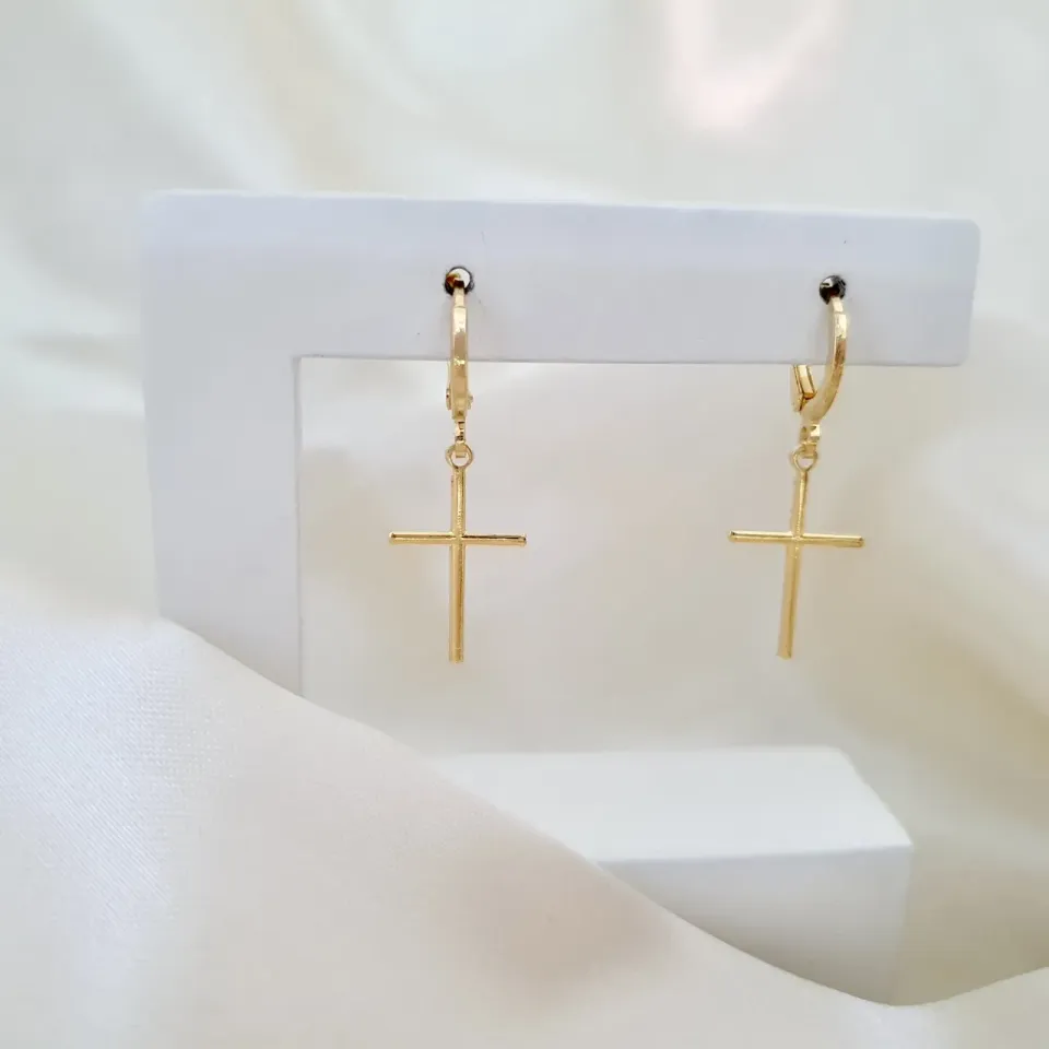 Brinco argola com pingente cruz