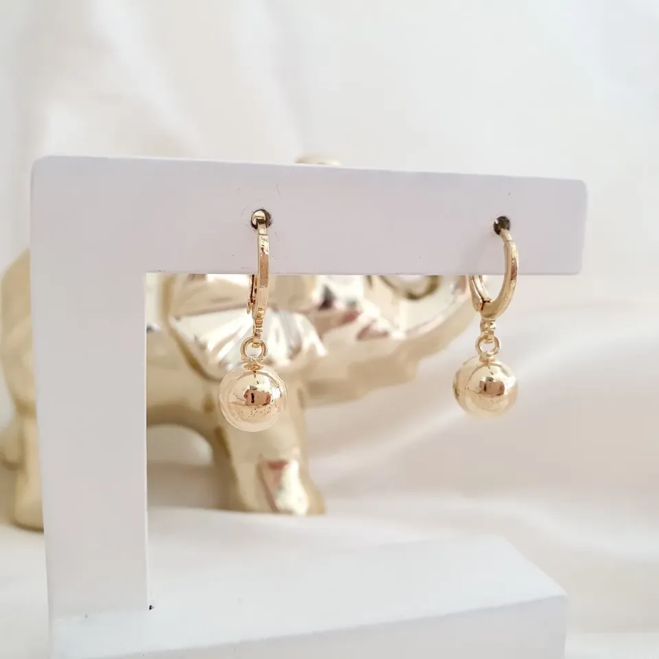 Brinco argola pingente bola