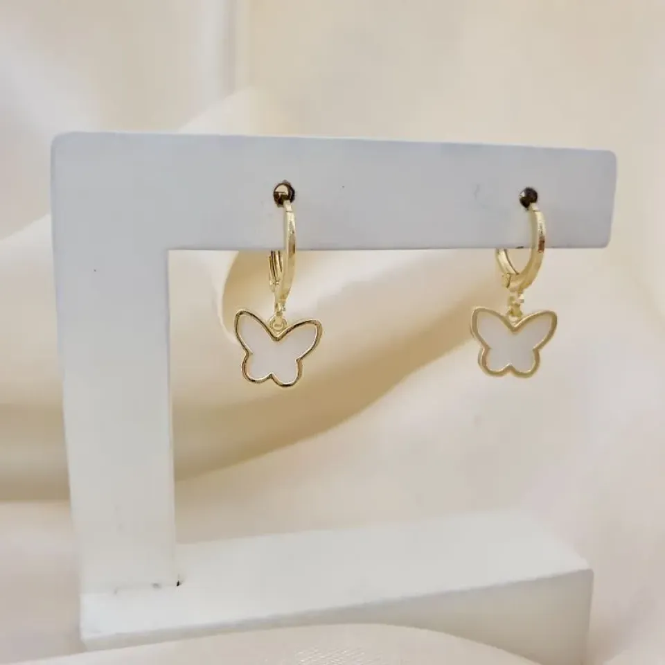 Brinco argola pingente borboleta resina branca
