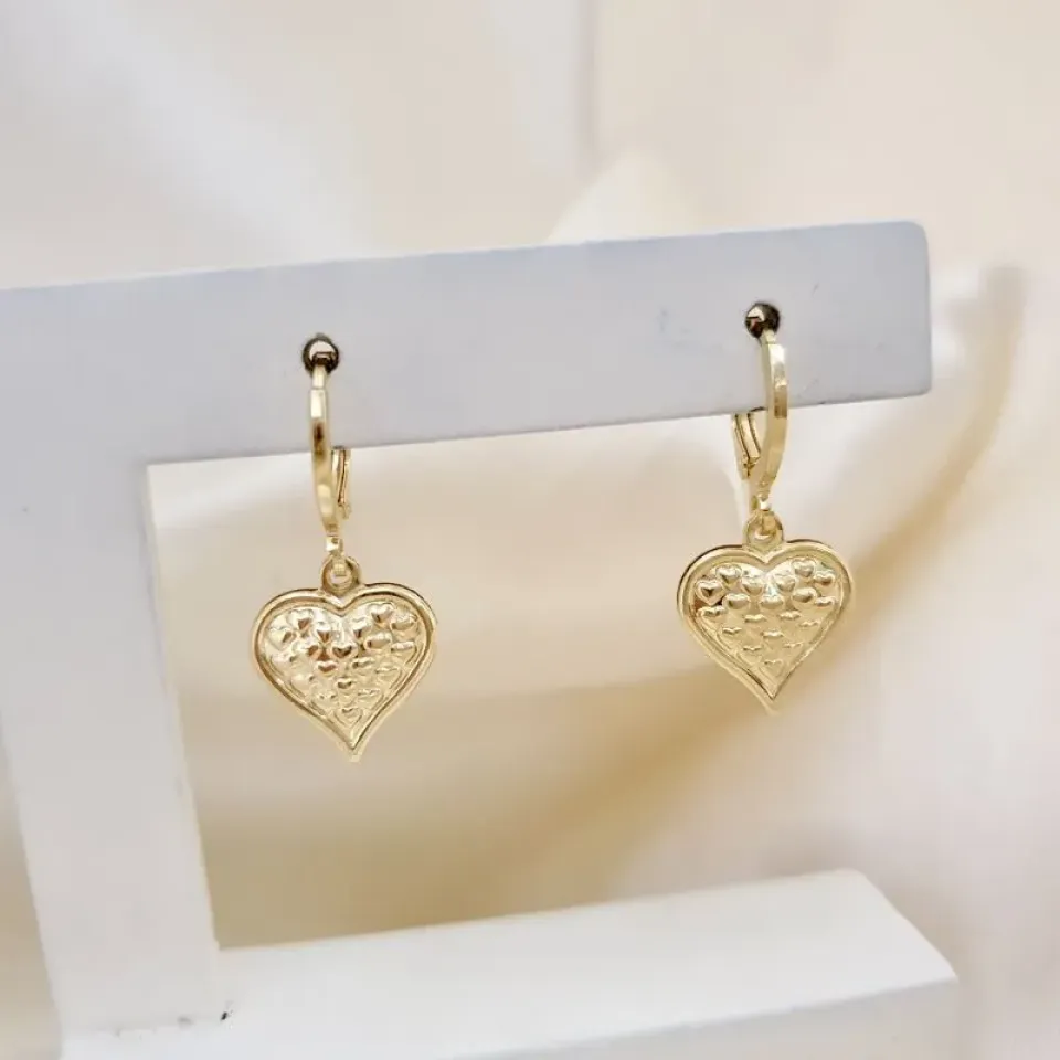 Brinco argola pingente coracao