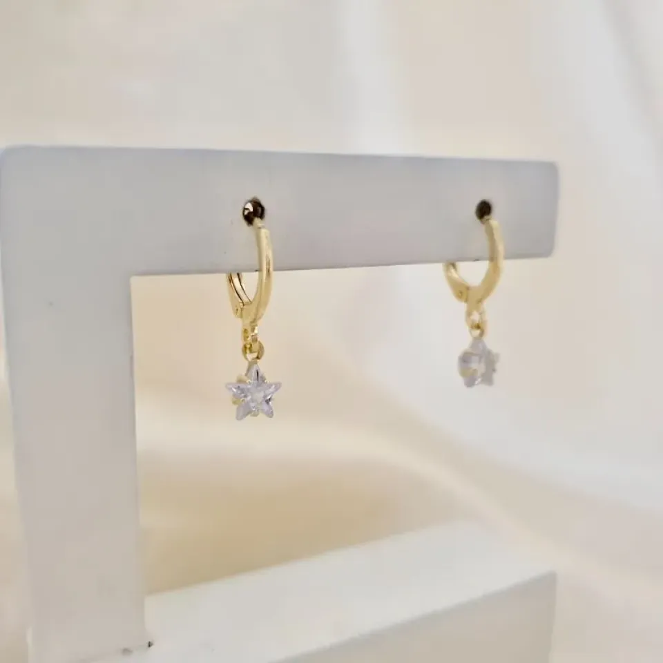 Brinco argola pingente estrela zirconia