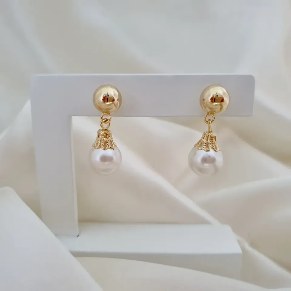 Brinco bola com pingente de pérola