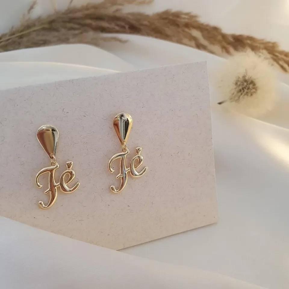 Brinco com pingente de Fé