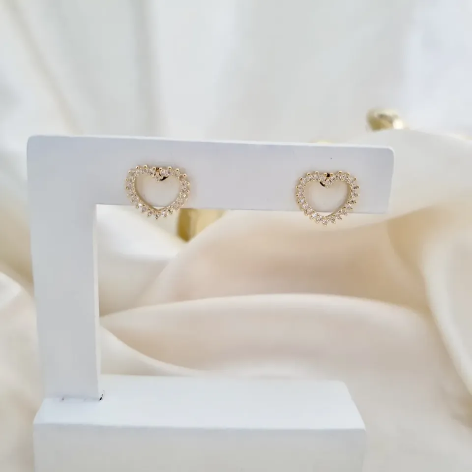 Brinco coração cravejado com zircônias