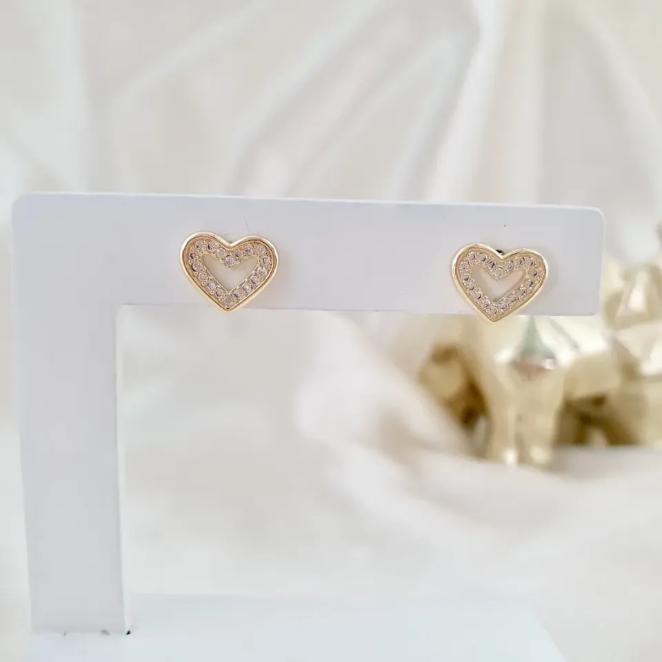 Brinco coração cravejado zircônias