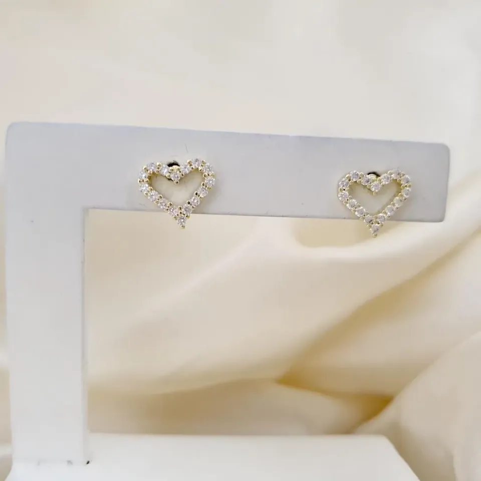 Brinco coracao cravejado zirconias