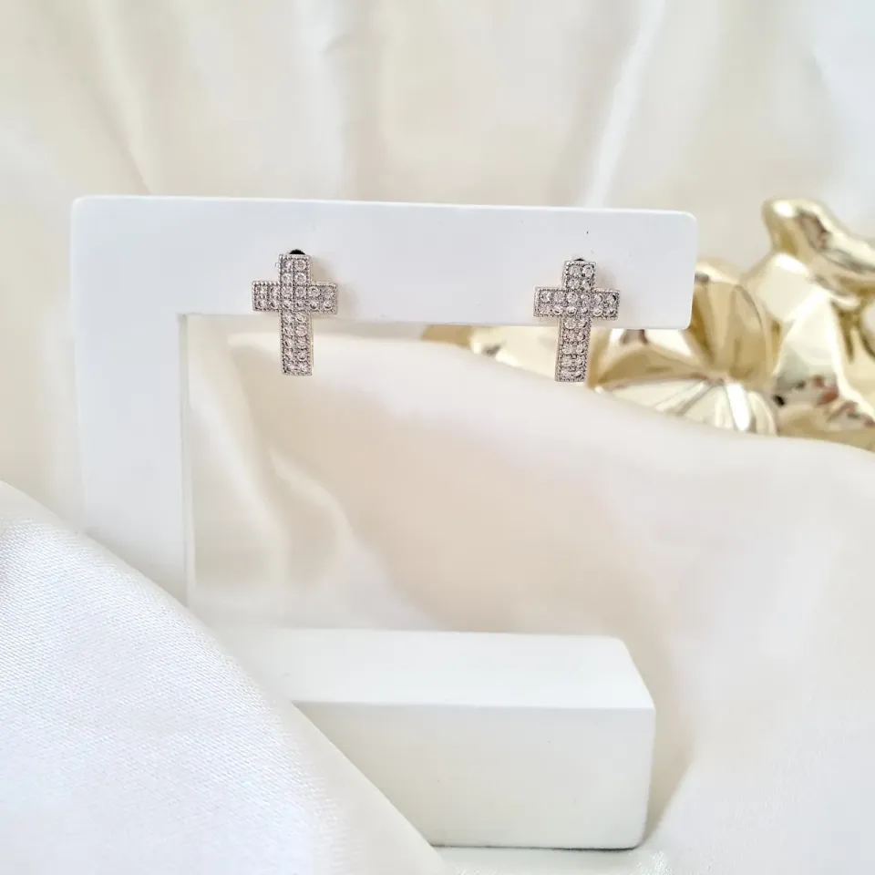 Brinco cruz cravejada em zircônia