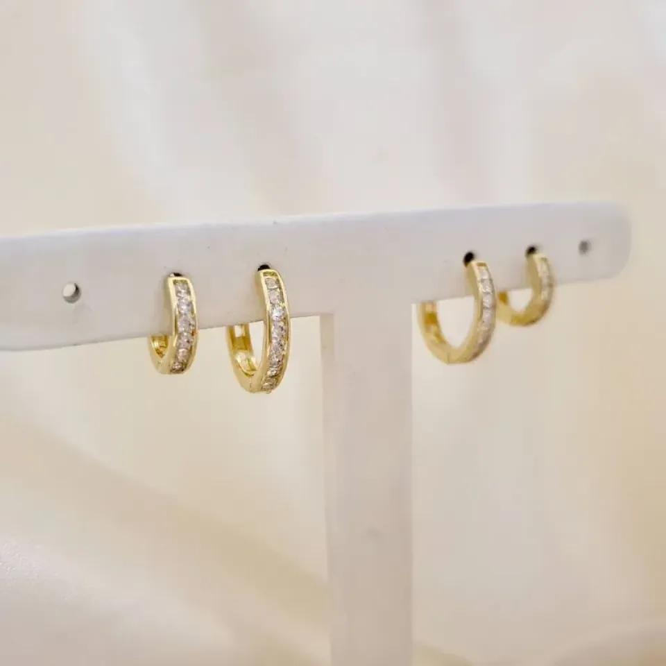 Brinco dupla argola click com zirconias