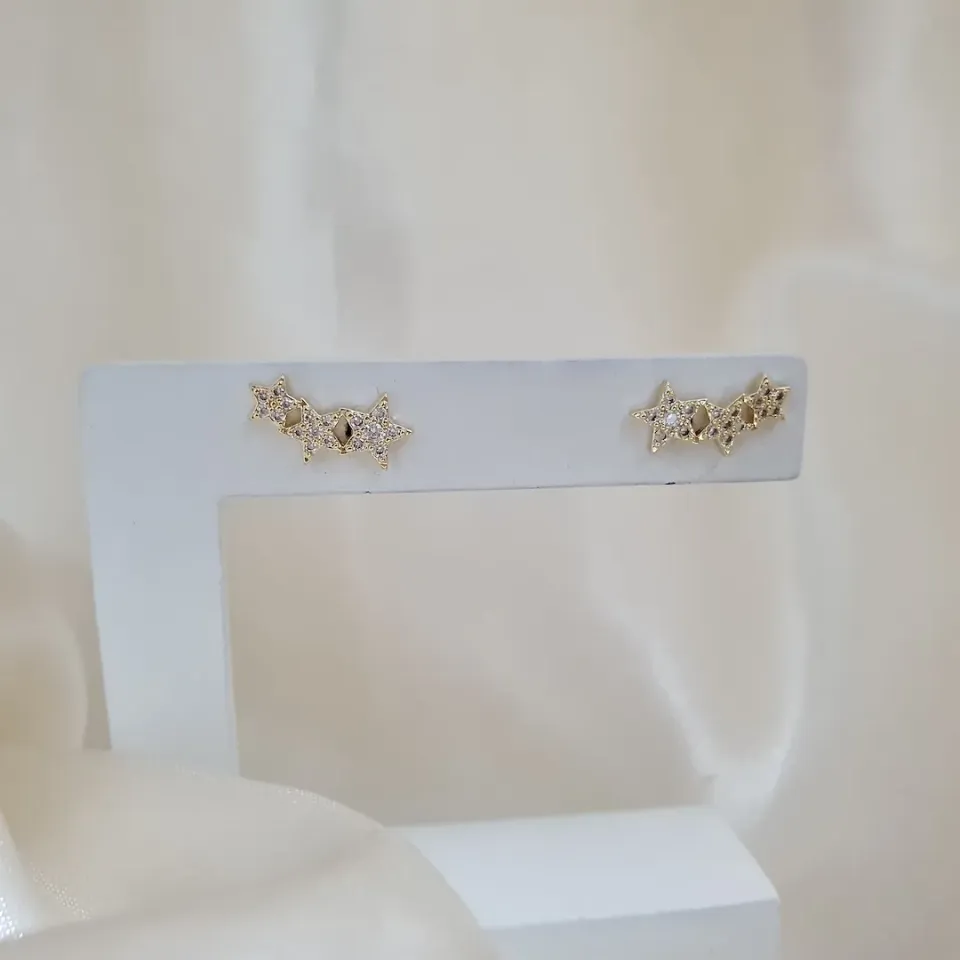 Brinco ear cuff estrelas cravejadas zircônias