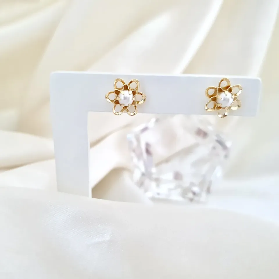 Brinco flor com pérola