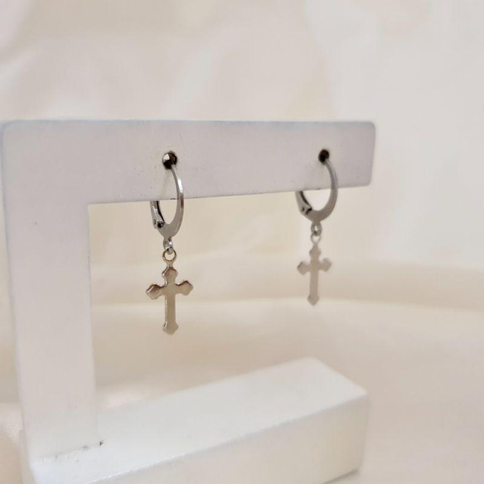 Brinco inox argola com pingente cruz