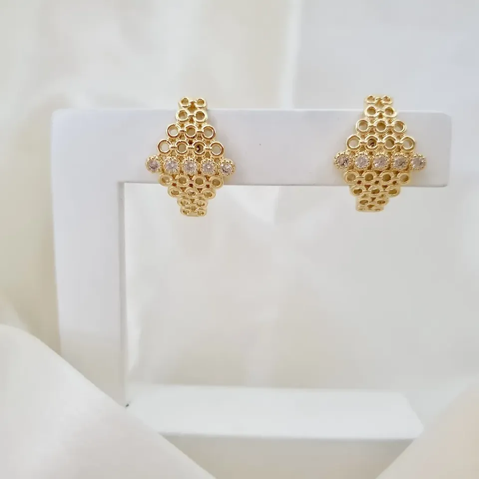 Brinco losango círculos e zircônias