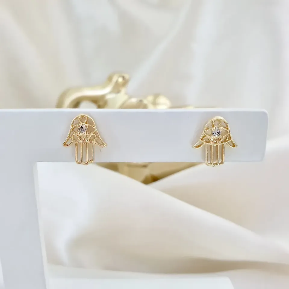 Brinco mão grega com ponto de luz
