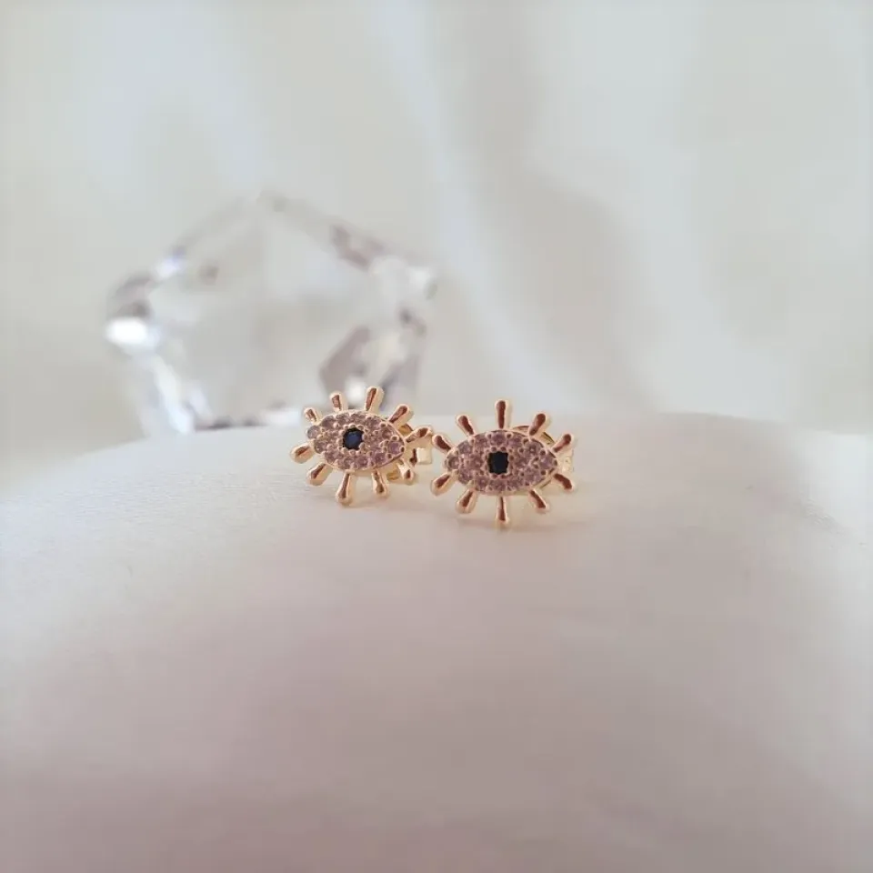 Brinco olho grego cravejado com zircônias