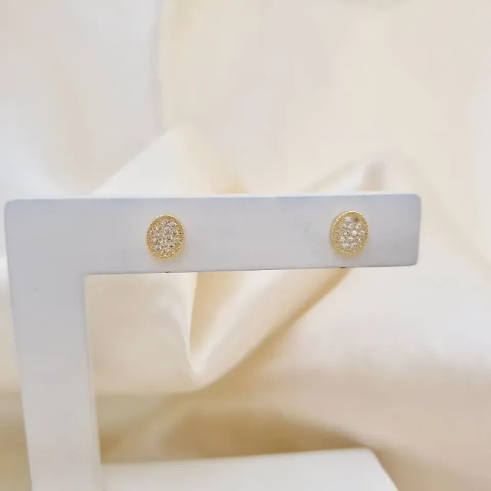 Brinco oval cravejado zirconia