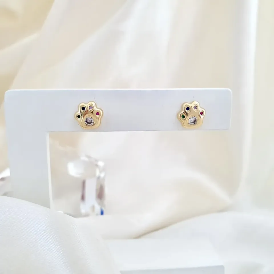 Brinco patinha pet com zircônias