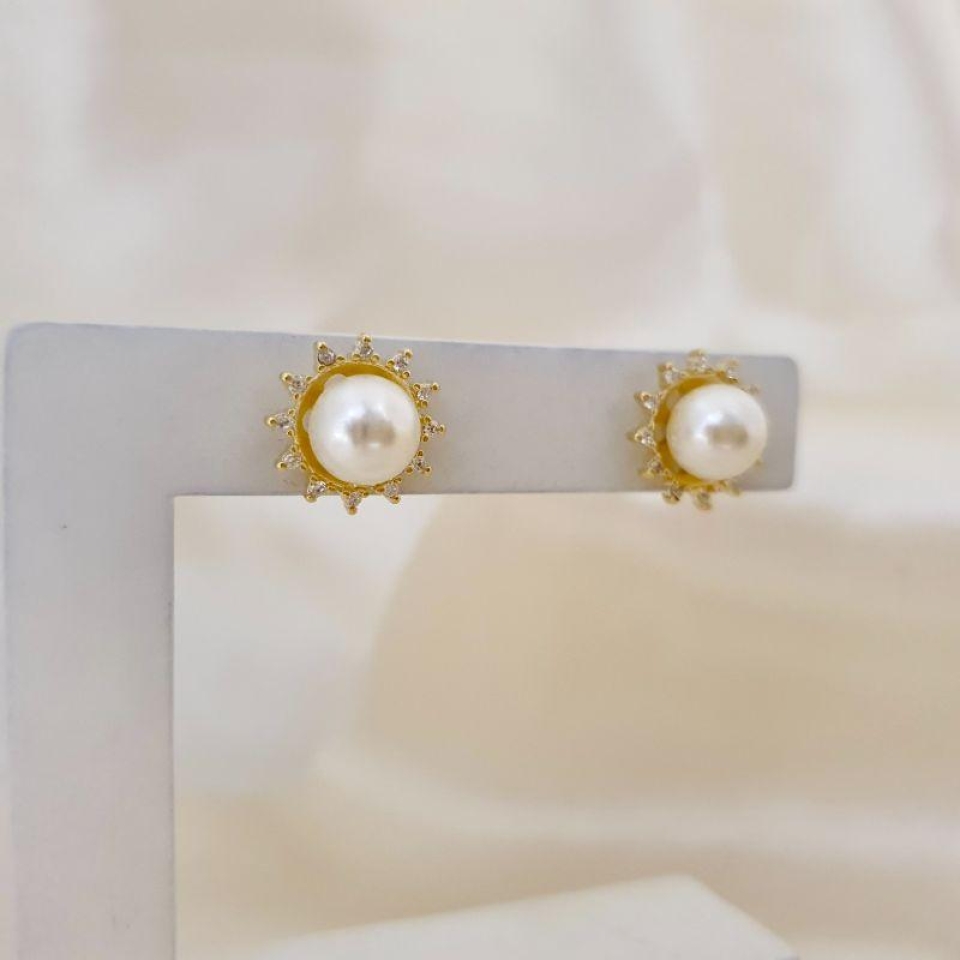 Brinco perola contorno de zirconias