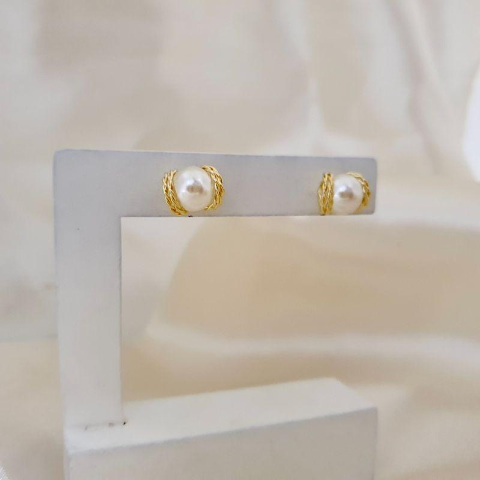 Brinco perola detalhe aro torcido
